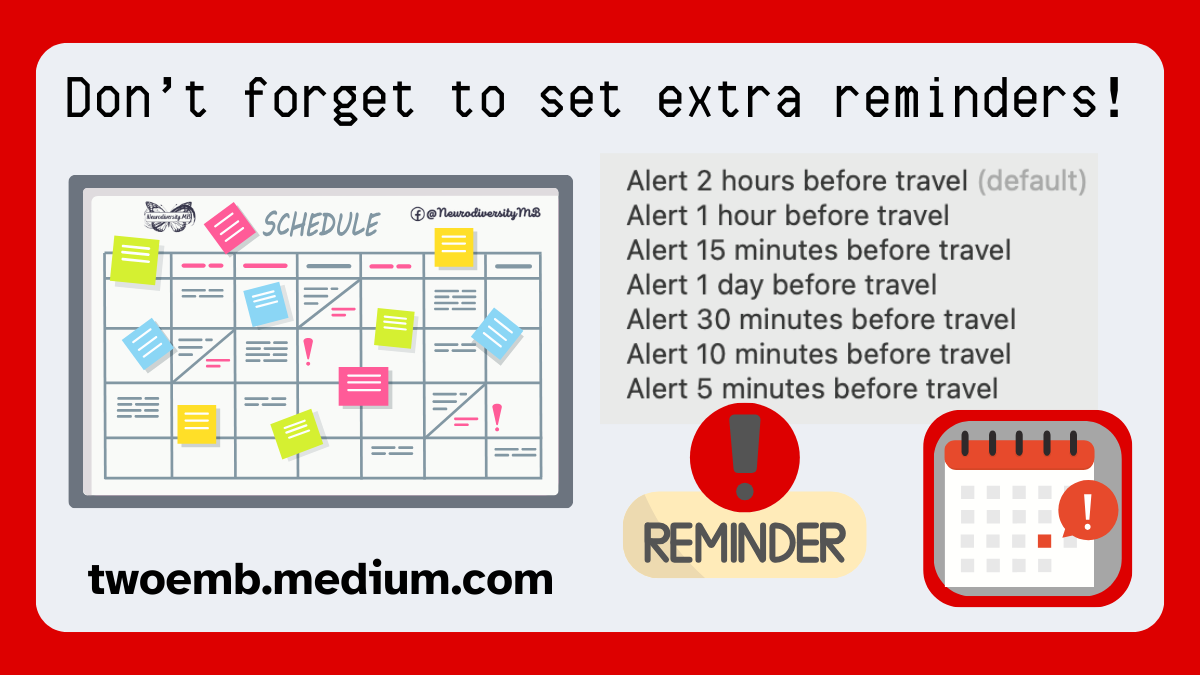 We must remember to write down the appointment, or put it into our electronic calendars, and set reminders (*don’t forget to set extra reminders!).